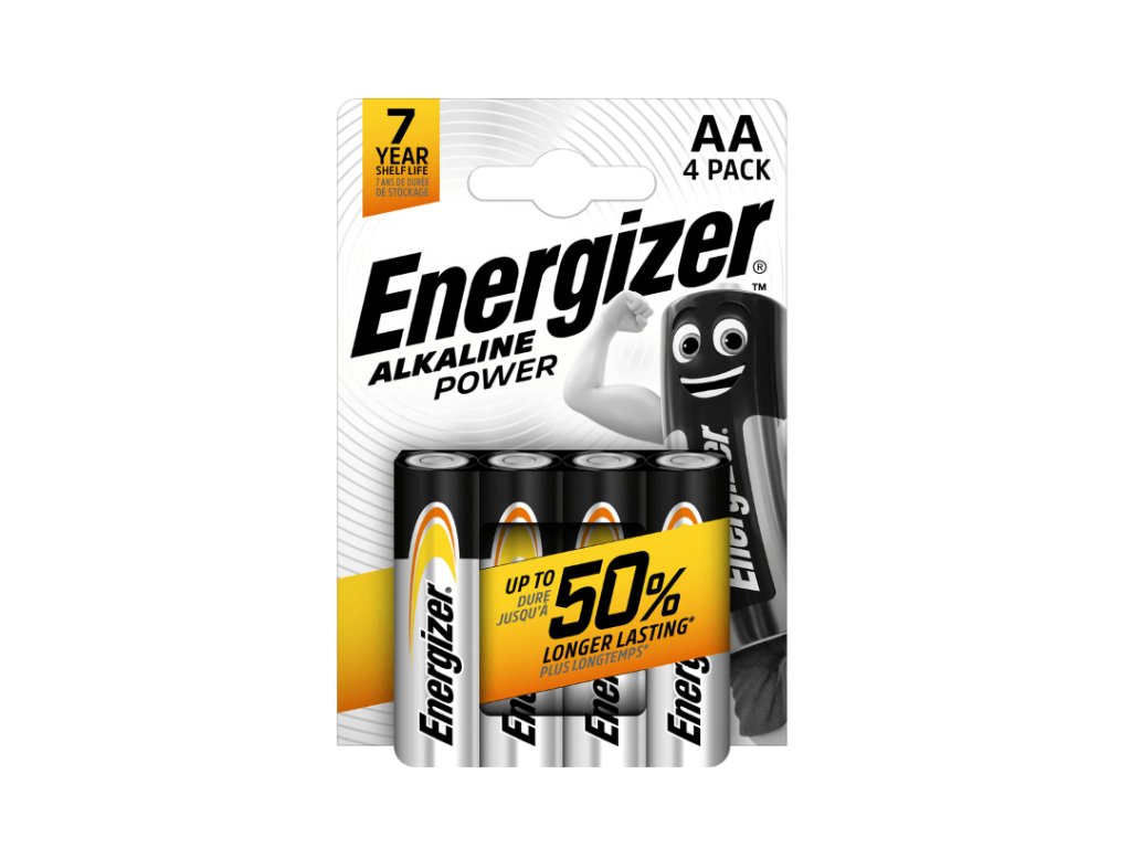Energizer Power LR6 AA su alkalne baterije tipa AA (LR6) , isporučuju se u pakiranju od 4. Ove baterije namijenjene su za uobičajene kućne i uredske elektroničke uređaje , kao što su daljinski upravljači, stolni satovi, igračke, svjetiljke ili bežični periferni uređaji.
