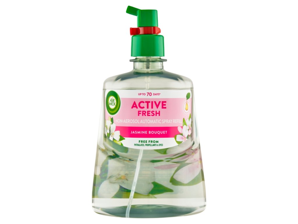 Air Wick Active Fresh postat će neizostavan dodatak vašem domu. Ovaj prvi osvježivač zraka bez aerosola dodat će egzotični miris jasmina vašem domu ili stanu. Sadrži prirodna eterična ulja kao i molekule koje neutraliziraju mirise. Jednostavan je za korištenje i omogućuje vam jednostavno podešavanje intenziteta mirisa.