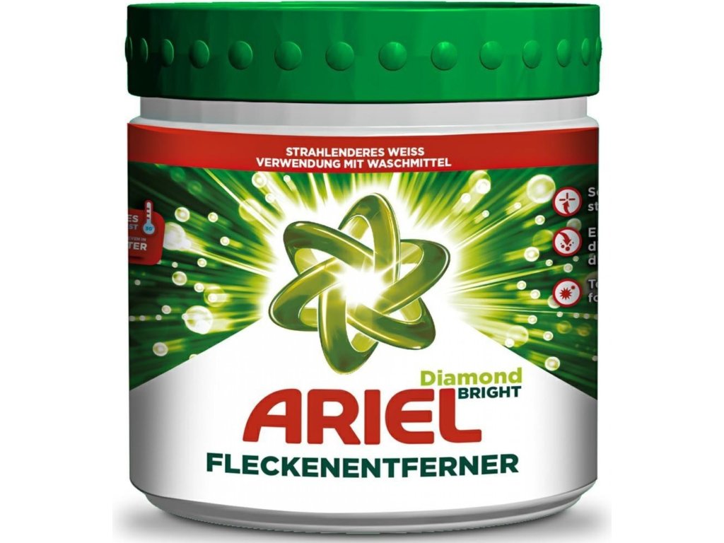 Često li se prilikom pranja susrećete s vrlo otpornim mrljama i tražite li učinkovitu obranu od njih? ARIEL sredstvo za uklanjanje mrlja jedno je od vrlo učinkovitih proizvoda prikladnih za bijelo rublje . Lako uklanja mrlje od ulja, trave i znoja. Najbolje je prati rublje na 30 °C, ova temperatura jamči maksimalnu učinkovitost. Što se tiče načina primjene, ARIEL Diamond Bright sredstvo za uklanjanje mrlja White 500 g potrebno je nanijeti na mrlje prije pranja.