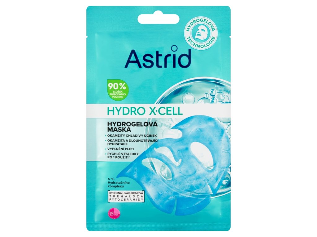 Astrid Hydro X-Cell hidrogel maska s 90% sastojaka prirodnog podrijetla obogaćena je s 5% učinkovitog multiaktivnog hidratantnog kompleksa s hijaluronskom kiselinom, trehalozom (zadržava vlagu) i fitoceramidima. Donosi osjećaj trenutne hidratacije i zadržava vlagu za dugotrajne rezultate. Hidrogel tehnologija daje koži trenutni učinak hlađenja i pomaže boljoj apsorpciji aktivnih sastojaka. Pogodna je za sve tipove kože.