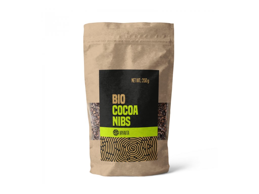 BIO Zdrobljena zrna kakaa poznata su namirnica dobivena od najkvalitetnijih zrna kakaa. Nepržena su, imaju čisti sastav , prepoznatljiv prirodni okus kakaa i savršeno su hrskava . U 100 g proizvoda pronaći ćete respektabilnih 23 g vlakana.