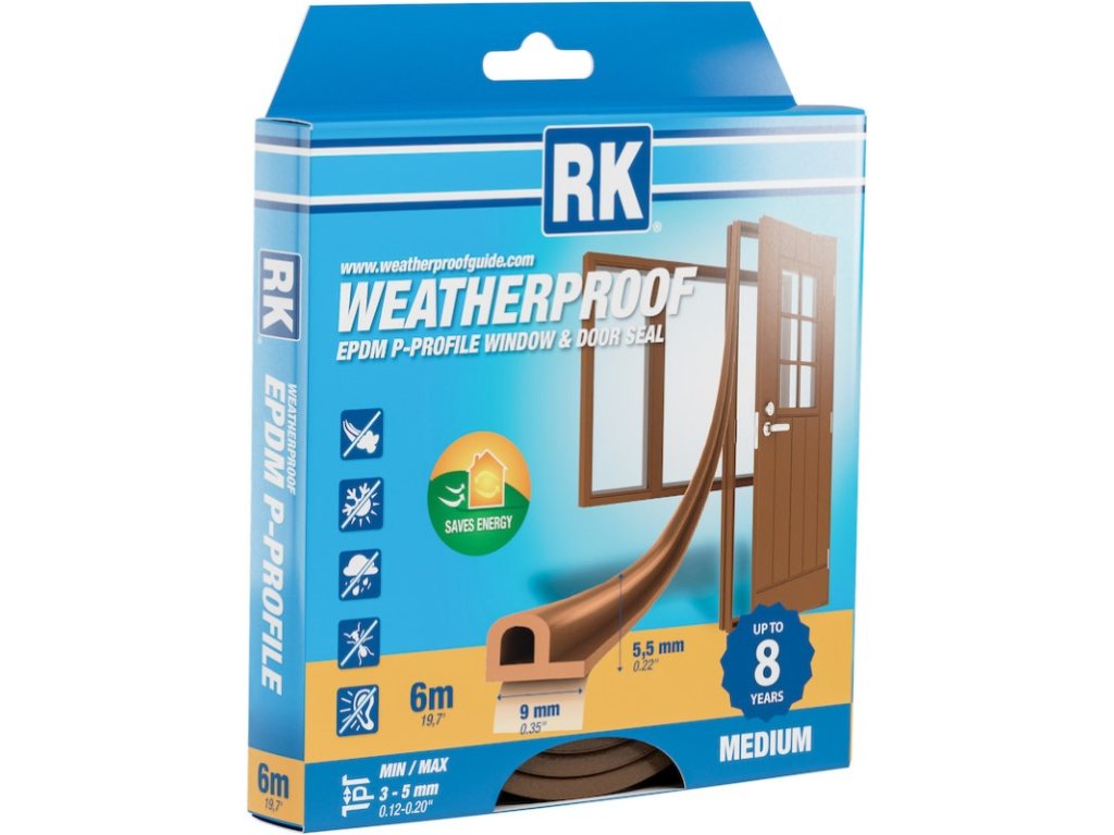 Samoljepljiva gumena brtva izrađena od visokokvalitetnog EPDM-a za pouzdanu zaštitu od hladnoće, propuha, vlage, prašine i buke. Otporna je na temperature od -40 °C do +60 °C i pomaže u smanjenju gubitaka energije u domu. Fleksibilna je, vodootporna, periva i prikladna za većinu vrsta prozora i vrata. Za pravilnu ugradnju preporučujemo čišćenje površine acetonom bez ulja RK ili sličnim sredstvom i ne ugradnju na temperaturama ispod +5 °C. Karakteristike: Ušteda energije i zaštita od propuha Pogodno za razmake od 3–5 mm Širina profila: 9 mm Samoljepljiva za jednostavnu ugradnju Otporna na vremenske uvjete, vijek trajanja do 8 godinaDodatni parametri