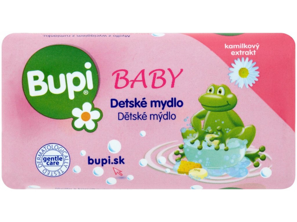 BUPI Dječji sapun s ekstraktom kamilice nježni je sapun za sve novorođenčad. U kozmetici se kamilica koristi za ublažavanje ekcema, osipa i upala kože. Sapun s ekstraktom kamilice ima umirujući i ljekoviti učinak na osjetljivu dječju kožu. Sastojci: natrijev tallowat, voda, natrijev kokoat, glicerin, parfem, butilen glikol, ekstrakt cvijeta kamilice (Chamomilla Recutita), natrijev klorid, tetranatrijev etidronat, tetranatrijev EDTA, fenoksietanol, natrijev benzoat, linalol, butilfenil metilpropional, geraniol, limonen, CI 77891