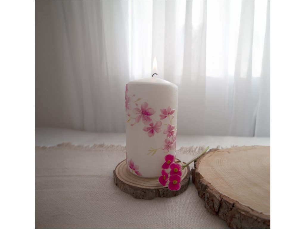 Ova svijeća s motivom cvijeća unijet će svježinu i nježan miris prirode u vaš dom. Dimenzije su joj 60x110 mm.Dodatni parametri