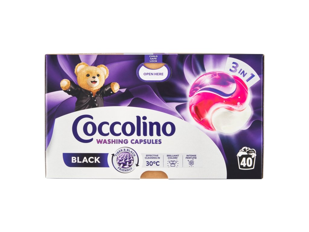 Ovog puta, Coccolino Teddy Bear vam donosi gel kapsule za pranje rublja, koje su namijenjene pranju crnog i tamnog rublja, kojem pružaju potrebnu njegu. Vaše crno rublje neće izgubiti boju niti izblijedjeti. Kapsule su kompaktne, jednostavne za korištenje i pružit će vašem rublju maksimalnu njegu. Proizvod će cijeniti obitelji s djecom, vlasnici kućnih ljubimaca i svi koji traže kvalitetne proizvode za pranje rublja koji su nježni prema koži. Rublje će biti prekrasno mekano na dodir i stvorit će neusporediv osjećaj svježine prilikom nošenja.