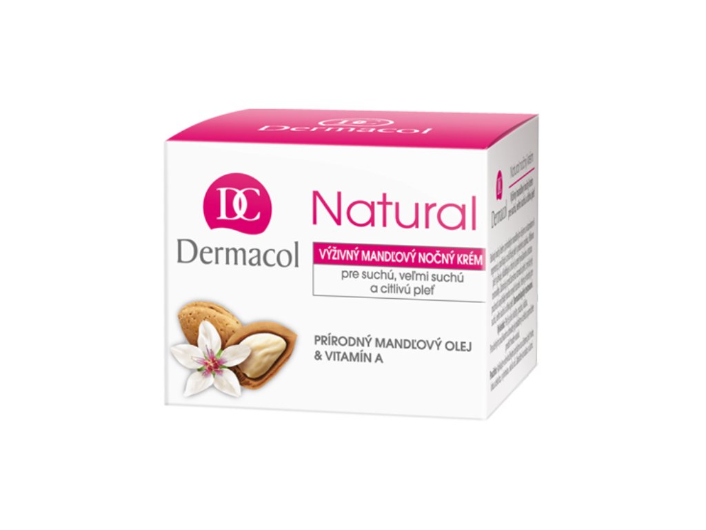 Dermacol Natural hranjiva noćna krema s bademovim uljem sadrži formulu s bademovim uljem i pantenolom koji intenzivno hidratiziraju kožu tijekom noći, hrane je, doprinose bržem stvaranju novih stanica, sprječavaju prerano starenje kože i povećavaju njezinu elastičnost.