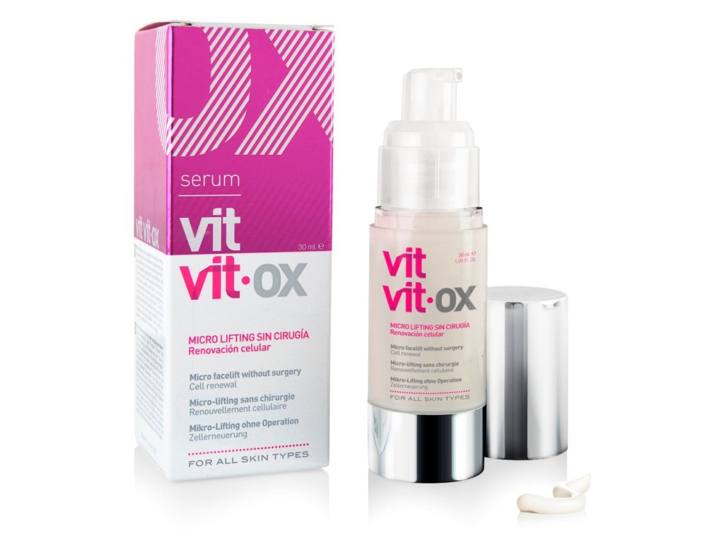 Serum Vit Vit OX intenzivno zateže kožu i obnavlja stanice kože bez potrebe za kirurškim zahvatima. Brzo i učinkovito vraća elastičnost koži, zaglađuje bore i fine linije te uklanja druge znakove starenja kože, poput opuštanja i stvaranja pigmentnih mrlja. Proizvod odmah nakon nanošenja osvježava kožu i dovoljno je hidratizira. Brzo i pouzdano vraća elastičnost koži i daje koži opuštajući osjećaj ugodnog opuštanja.
