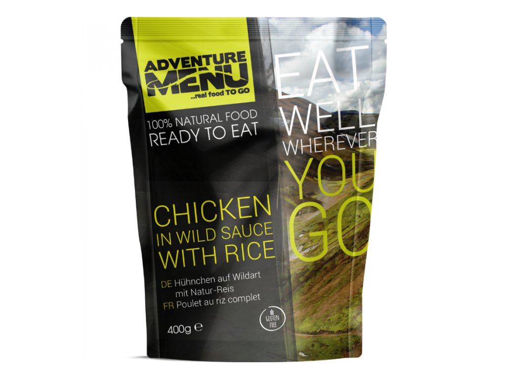Divlja piletina s rižom je ručno pripremljeno jelo prema tradicionalnom receptu. Ne sadrži gluten niti bilo kakve neželjene dodatke. Također je vrlo jednostavna i brza za pripremu. Samo je trebate podgrijati i uživati. Osim na planinarenju, cijenit ćete je i kod kuće tijekom zahtjevnih dana kada nemate vremena za dugotrajno kuhanje.