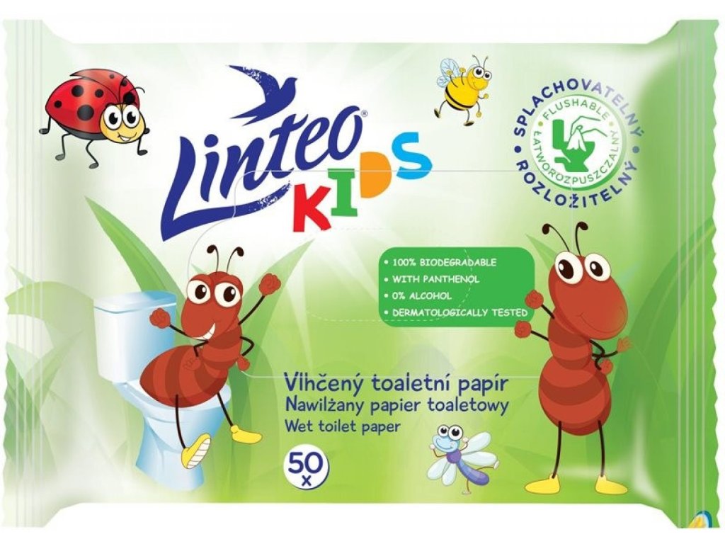 Dječji vlažni toaletni papir Linteo KIDS 50 komada, s mogućnošću bacanja u WC školjku