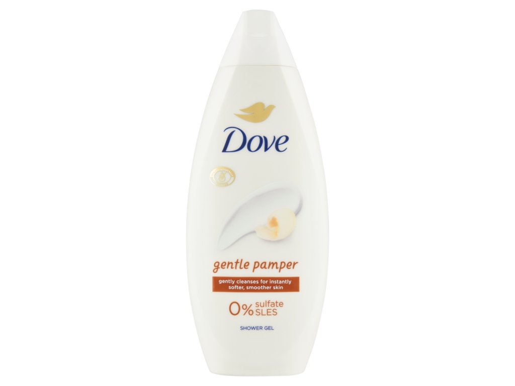 Dove gel za tuširanje za žene 250 ml Gentle Pamper je nježni gel za tuširanje obogaćen hranjivim uljem koje pruža trenutno mekšu i glatkiju kožu.