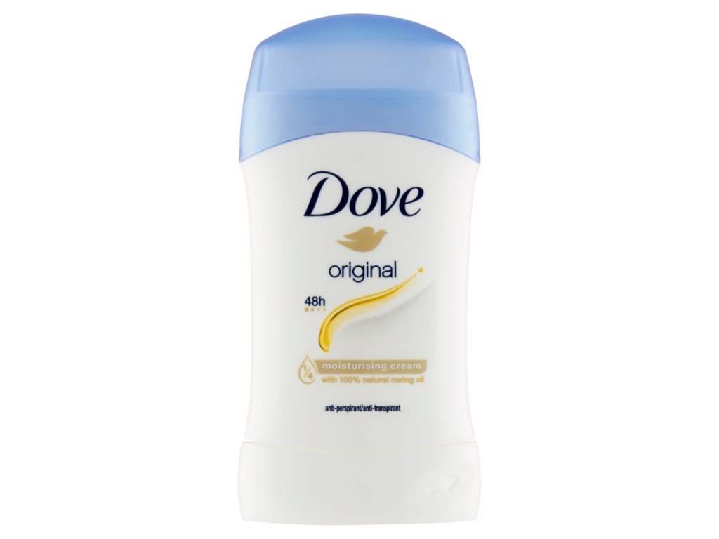 Dove Original čvrsti antiperspirant s ¼ hidratantne kreme podržava regeneraciju kože nakon brijanja, pruža 48-satnu dezodorirajuću zaštitu i ostavlja je prekrasno mekom.