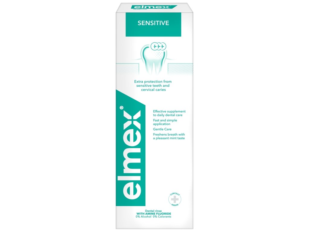 Elmex® SENSITIVE PLUS vodica za ispiranje usta idealan je dodatak svakodnevnoj njezi zubi. Sadrži kombinaciju visoko aktivnog sastojka amin fluorida sa zaštitnim polimerom, koji podržava djelovanje paste za zube elmex® SENSITIVE PLUS. Klinička ispitivanja pokazala su da poseban zaštitni sustav elmex® SENSITIVE PLUS, koji se sastoji od paste za zube i vodice za ispiranje usta, značajno smanjuje osjetljivost zubnog vrata pri redovitoj upotrebi i dokazano sprječava karijes.
