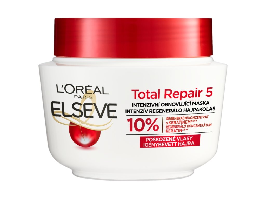 Je li vaša kosa tanka, slaba, mlitava, oštećena i beživotna ? 5 problema, 1 rješenje, Elseve Total Repair 5 je prva linija njege za potpunu obnovu oštećene kose. L'Oréalovi laboratoriji stvorili su formulu s Pro-Kératinom i Ceramidom za obnovu strukture i zaglađivanje površine kose. Dan za danom, vaša kosa je potpuno regenerirana.