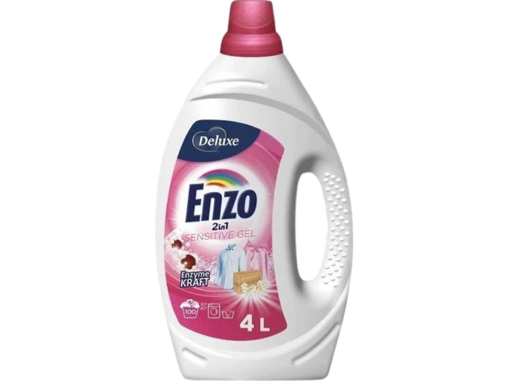 Enzo Deluxe Sensitive je tekući gel za pranje rublja namijenjen nježnom pranju obojenog i bijelog rublja. Posebno je razvijen za osjetljivu kožu - ne sadrži iritirajuće mirise i nježan je prema vlaknima. Pogodan je za pranje odjeće od prirodnih i sintetičkih vlakana u svim vrstama perilica rublja i za ručno pranje.