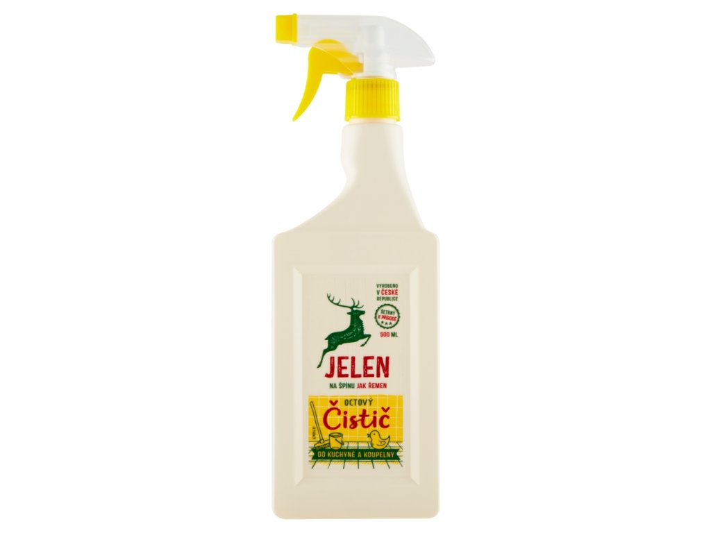 Jelen sredstvo za čišćenje s octom za kamenac i tvrdokornu prljavštinu. Čak je i Jelenina baka ribala kamenac i tvrdokornu prljavštinu octom. Zato Jelenovo sredstvo za čišćenje na bazi octa tako dobro djeluje u kuhinji i kupaonici. Ostavite da djeluje neko vrijeme nakon nanošenja, a zatim očistite i isperite. Ako je potrebno, prozračite i uklonite miris octa. Izbjegavajte površine osjetljive na kiseline.