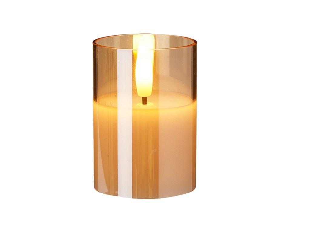 LED svijeća u staklu s timerom 50x50x70 mm – dimljena