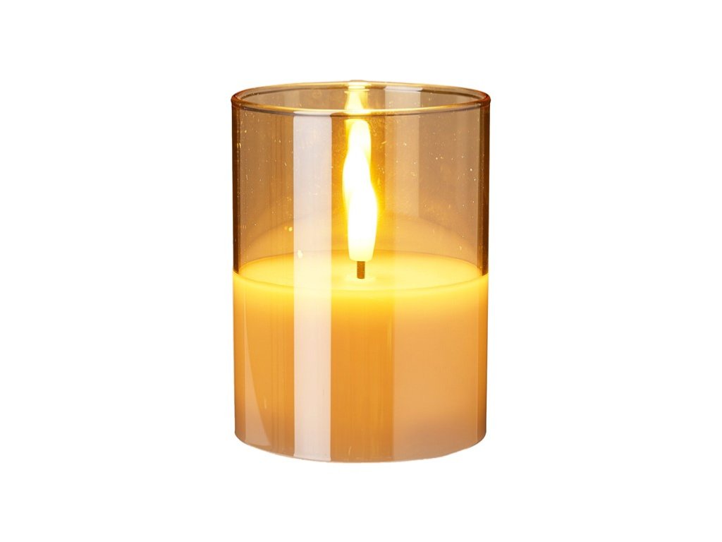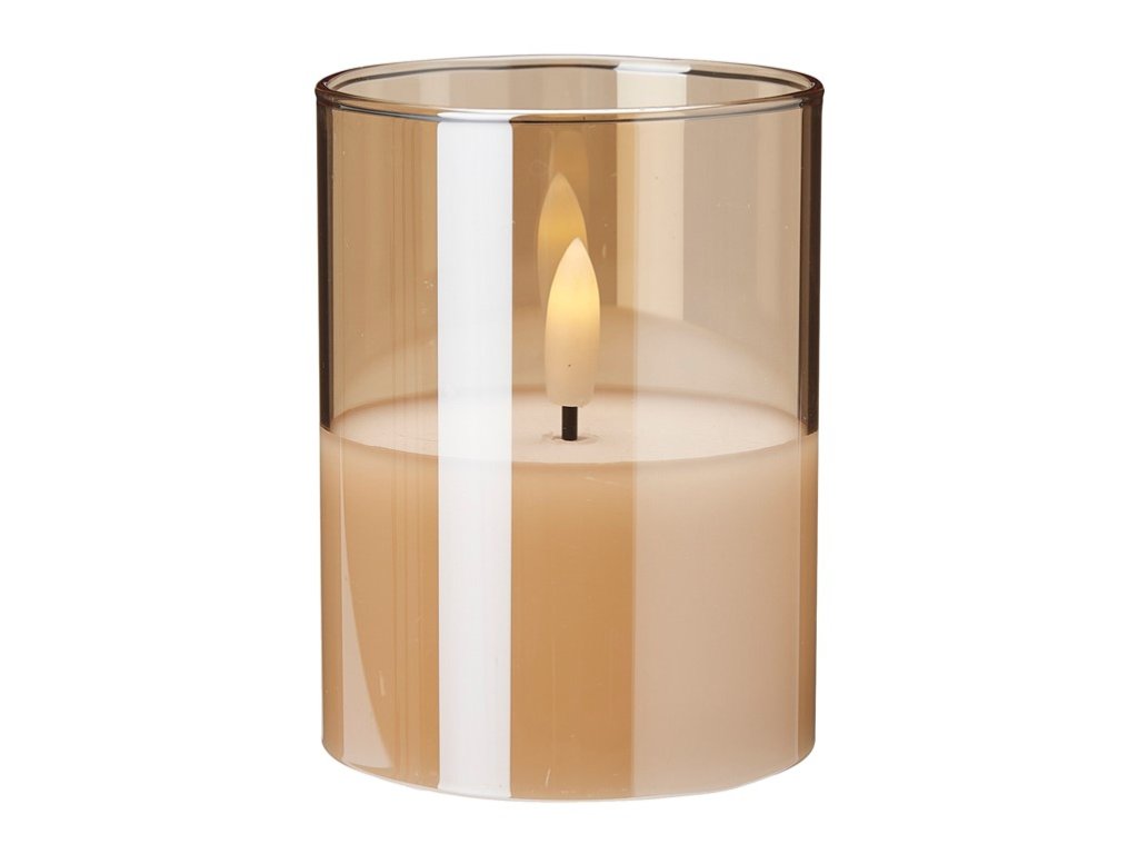 LED svijeća u staklu s timerom 75x75x100 mm – dimljena