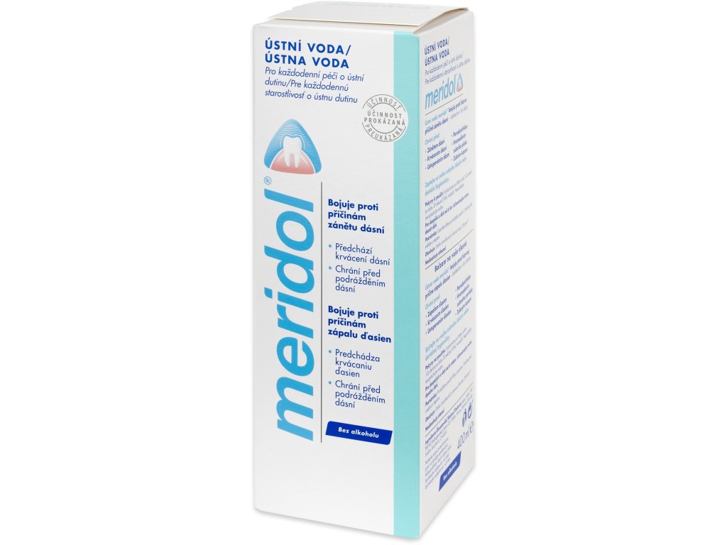 MERIDOL vodica za ispiranje usta za svakodnevnu oralnu njegu. Bori se protiv uzroka gingivitisa. Sprječava krvarenje desni i štiti od iritacije desni. Bez alkohola.