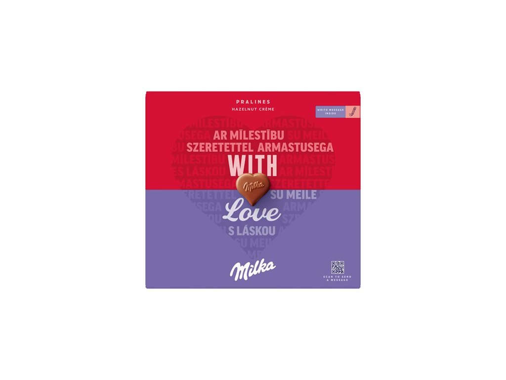 Milka mliječni čokoladni bomboni od alpskog mlijeka s nadjevom od kreme od lješnjaka (40%).Dodatni parametri