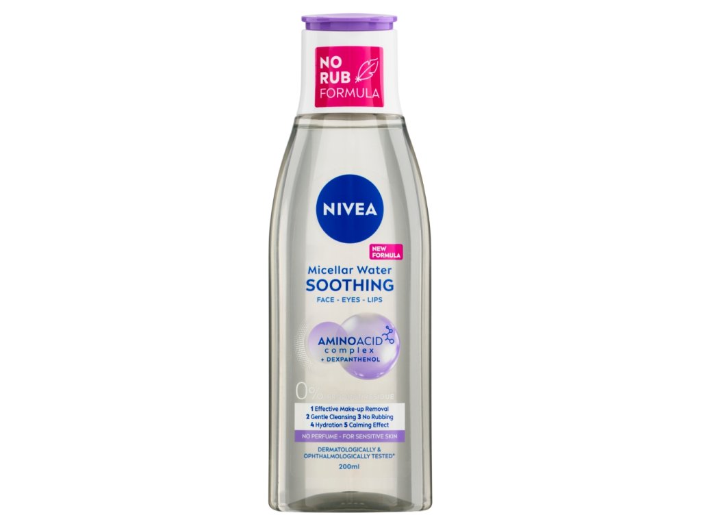 Otkrijte savršeno sredstvo za skidanje šminke i čišćenje koje učinkovito uklanja nečistoće, a istovremeno je nježno prema koži! Zahvaljujući micelnoj tehnologiji, privlačit ćete svakodnevne nečistoće, masne čestice i tragove šminke poput magneta. Dekspantenol i ulje sjemenki grožđa također vlaže kožu i štite je od iritacije. Za savršenu čistoću bez potrebe za pilingom: NIVEA Soothing Care micelarna voda 3 u 1.