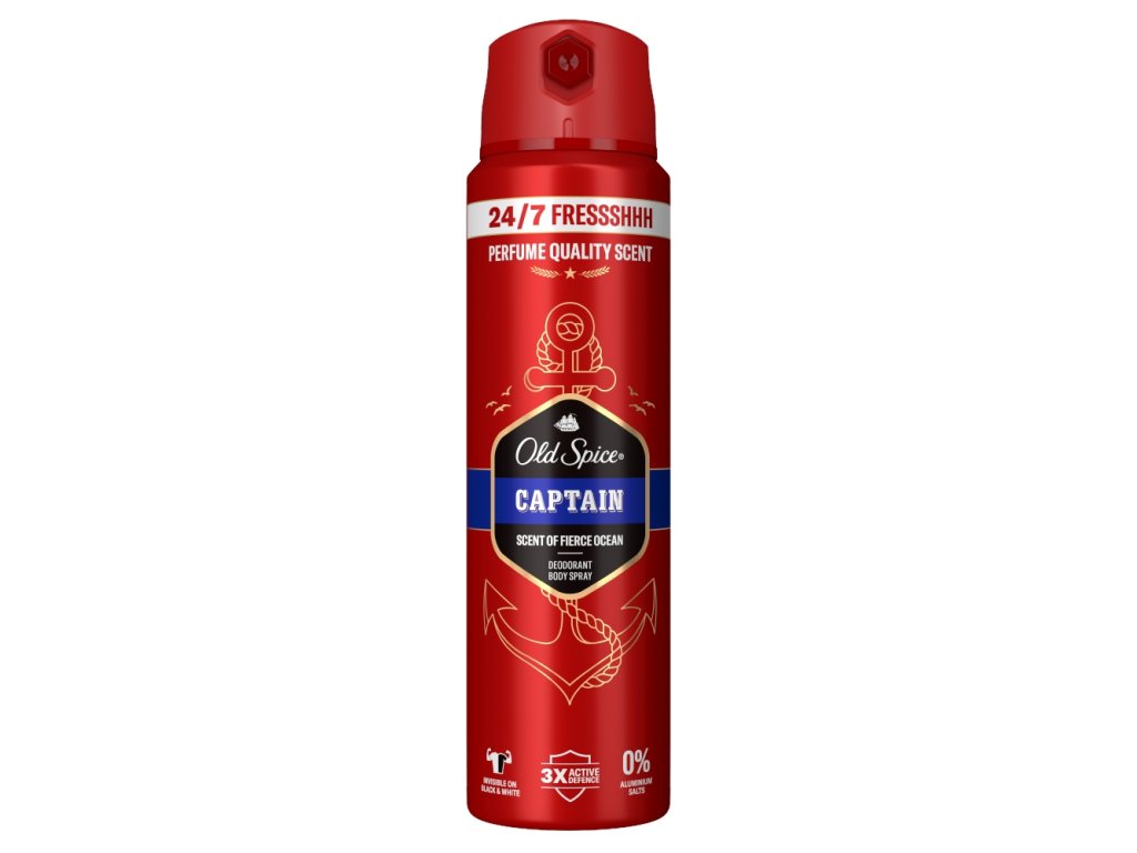 - Poprskajte ispod pazuha i po cijelom tijelu za dugotrajnu zaštitu. Kako biste bez napora ispunili svoje ambicije, Old Spice Captain vam donosi kamenicu koja će vam otvoriti svijet sofisticiranim i društvenim mirisom koji ne poznaje gafove. Old Spice dezodorans za muškarce osvojit će čak i najjače mirise svojim zapanjujućim mirisom.
