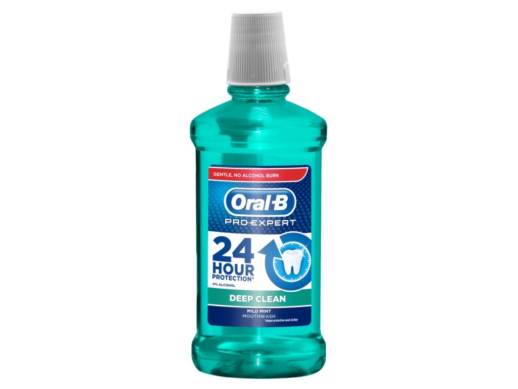 Oral B Pro-Expert Deep Clean vodica za ispiranje usta ne samo da osvježava dah, već se i bori protiv zubnih naslaga te pomaže u održavanju zdravlja desni i zubi.