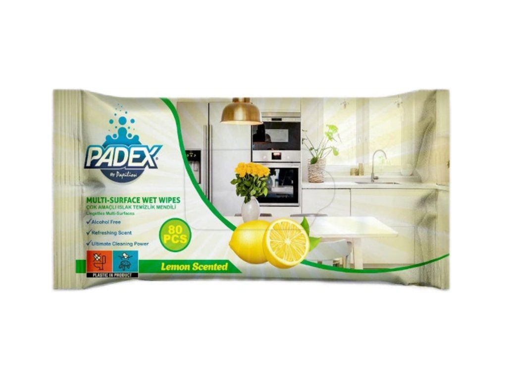 Padex vlažne maramice za čišćenje s osvježavajućim mirisom limuna praktičan su pomagač za brzo i jednostavno čišćenje kod kuće, u uredu i na putu. Prikladne su za svakodnevno čišćenje raznih površina i pomažu u uklanjanju prašine, prljavštine i otisaka prstiju bez potrebe za dodatnim sredstvima za čišćenje.