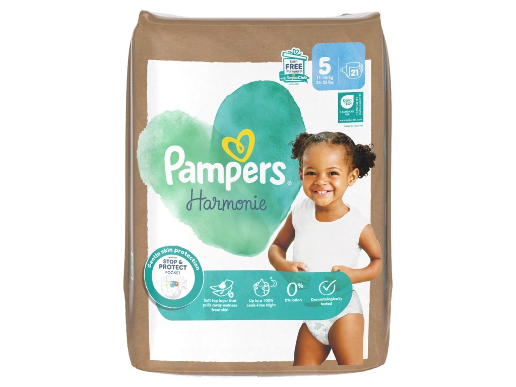 Pampers Harmonie pelene nježne su prema bebinoj koži; hipoalergene su*, dermatološki testirane, sadrže 0% parfema i mlijeka, certificirane su prema Standardu 100 od strane OEKO-TEX-a i odobrene od strane dermatologa udruge Skin Health Alliance**. Izrađene su od odgovorno nabavljene celuloze (FSC certifikat) i drugih pažljivo odabranih materijala. Jamče do 12 sati Pampers suhoće, za jamstvo kvalitete koje je potrebno svakom roditelju.