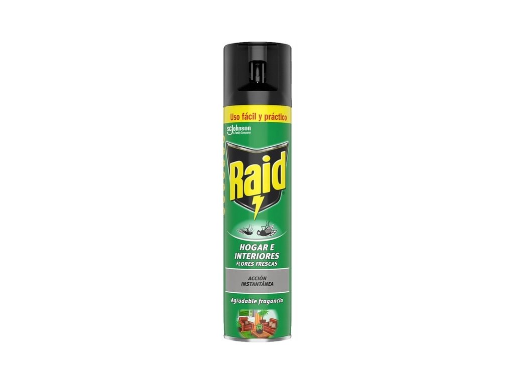 Raid insekticidni aerosol dizajniran je za brzo uklanjanje letećih insekata u i oko kuće. Učinkovit sastav djeluje odmah i pomaže u zaštiti od muha, komaraca, osa, stršljena i moljaca. Fina maglica u zraku može ubiti insekte bez izravnog kontakta, a istovremeno ostavlja svjež cvjetni miris.