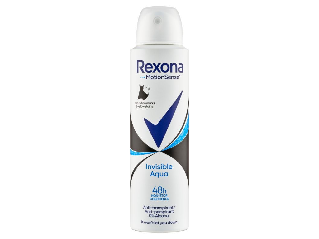 Rexona Invisible Aqua pouzdano će vas zaštititi od znoja i neugodnog mirisa do 48 sati. Gdje god se nalazili, što god radili tijekom dana, Rexona Invisible Aqua antiperspirant uvijek će biti s vama i pomoći vam da ostanete samouvjereni. Također sadrži inovativnu patentiranu MotionsenseTM tehnologiju temeljenu na prisutnosti mikrokapsula koje sadrže miris i postupno pucaju zbog trenja tijekom kretanja. To rezultira postupnim oslobađanjem parfema prema tjelesnoj aktivnosti. Ovdje vrijedi pravilo da što se osoba više kreće, to antiperspirant intenzivnije miriše. Osim učinkovite zaštite, Rexona Invisible Aqua antiperspirant sprej nudi i nježan, ali osvježavajući cvjetni miris. Rexona - Neće vas izdati!