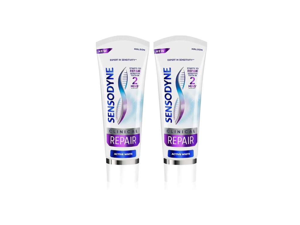 Sensodyne Clinical Repair Active White je pasta za zube dizajnirana za svakodnevnu njegu osjetljivih zubi, koja kombinira naprednu tehnologiju za obnovu osjetljivih područja s blagim učinkom izbjeljivanja. Sadrži jedinstveni sastojak NovaMin (5%) koji se aktivira tijekom pranja zubi i pomaže u stvaranju zaštitnog mineralnog sloja na oslabljenim područjima zubi, doprinoseći dugotrajnom olakšanju od osjetljivosti.
