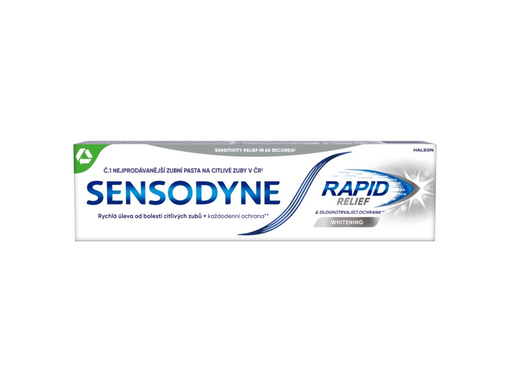 Pasta za zube koja ublažava bol osjetljivih zubi za 60 sekundi, a istovremeno izbjeljuje zubnu caklinu i pomaže u sprječavanju mrlja. Pasta za zube Sensodyne Rapid Whitening pruža brzo djelujuće, klinički dokazano olakšanje od boli osjetljivih zubi. Kositrov fluorid obnavlja zaštitni sloj na izloženom dentinu.