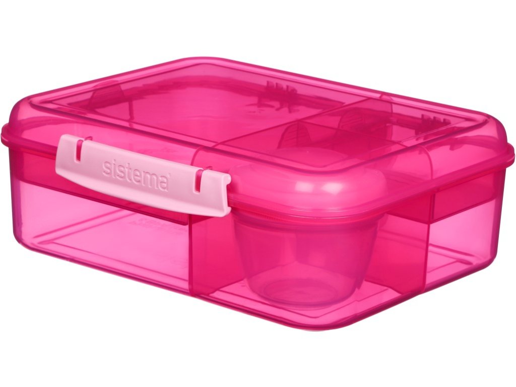 Sistema Divided Lunch Bento Snack Box s posudom za jogurt i 2 pladnja 1,65 l, ružičasta