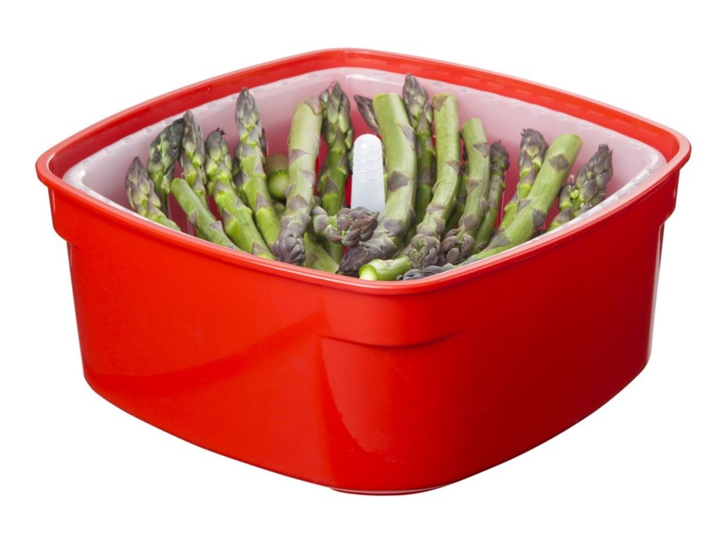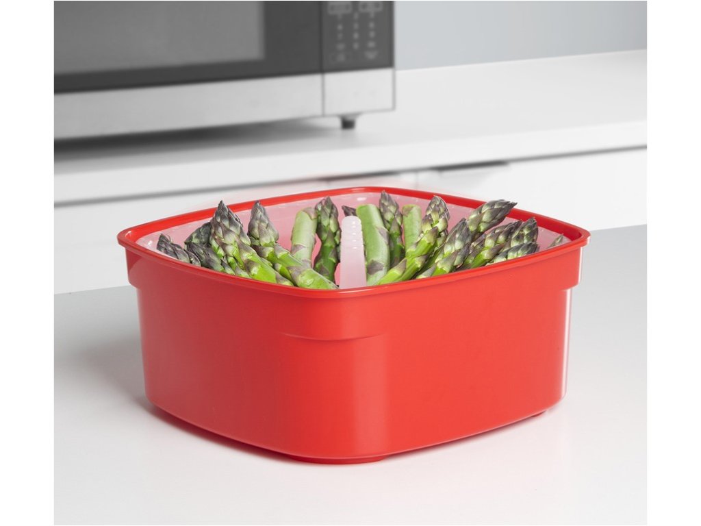 Sistema posuda za kuhanje na pari za povrće i ribu, mikrovalna pećnica na pari 2,4 l, crvena