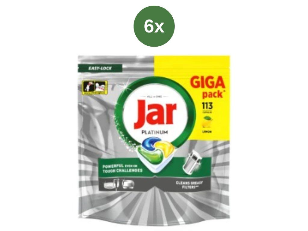 Kapsule za perilicu posuđa Jar Platinum GIGA vrhunsko su višenamjensko rješenje za besprijekorno čisto posuđe. Zahvaljujući kombinaciji gela i praška, mogu se riješiti čak i tvrdokorne masnoće i osušenih ostataka hrane već u prvom pranju.