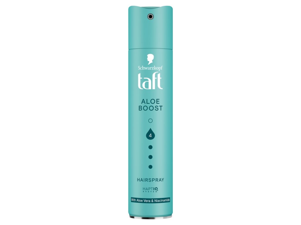 Taftov inovativni sprej sadrži Aloe Boost, koja kosi daje snagu i njegu za dugotrajno držanje i glatki, neljepljivi završetak. Ovaj Taftov sprej za oblikovanje kose sadrži aloe veru za hidratiziranu kosu i niacinamid za jačanje kose, pomažući u zaštiti frizure od vlage.