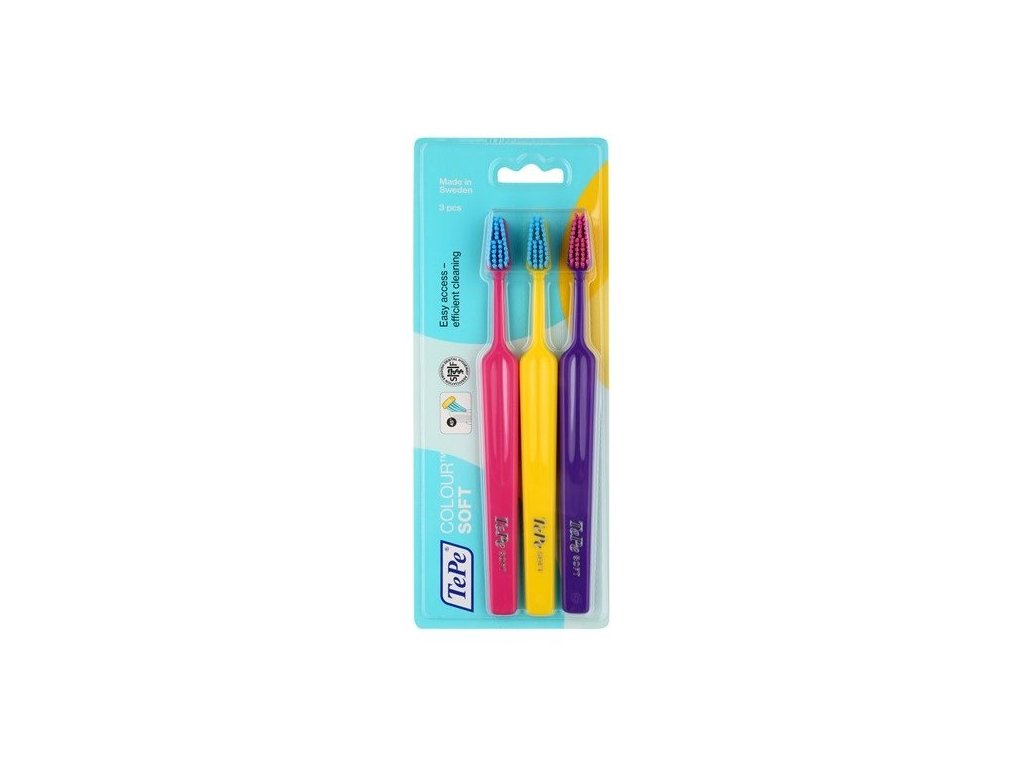 Biste li učinili sve za lijep osmijeh? Samo kupite TePe Colour Soft četkice za zube. Set popularnih TePe četkica za zube je neophodan! Mekane čekinje za nježno i učinkovito čišćenje i ergonomski oblikovana drška za pravilan hvat.