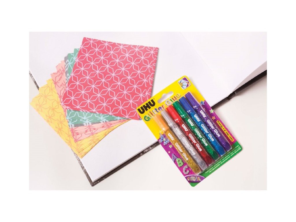 Šareni kreativni set UHU Glitter Glue Original donosi prekrasan efekt šljokica! Ljepilo sadrži čestice šljokica koje nakon sušenja ostaju na mjestu i stvaraju prekrasne efekte. Ekstra mekana tuba s preciznim aplikatorom omogućuje jednostavno i čisto nanošenje te ne kaplje. Ne sadrži otapala i perivo je. Dermatološki testirano - međutim, nije kozmetički proizvod. Isperite vodom ako dođe u dodir s kožom. PODRUČJE UPORABE: Možete ukrašavati širok raspon materijala, uključujući uskrsna jaja. Izradite vlastiti PF, čestitke, ukrasite okvir za fotografije. Samo skinite čep - i počnite ukrašavati! UPUTE ZA UPORABU: Izvadite dozirne olovke iz pakiranja, stavite ih u čašu naopako kako bi gel mogao teći u aplikator. Olovke su izrađene od mekog materijala i jednostavne su za rad. Lagano pritisnite kako biste istisnuli gel sa šljokicama i pišite, slikajte, crtajte. Gel ne sadrži otapala i suši se 4-6 sati, ovisno o temperaturi okoline i količini nanošenja. Nakon što se osuši, gela više nema, ostavljajući samo sloj prekrasnog šljokica.Dodatni parametri