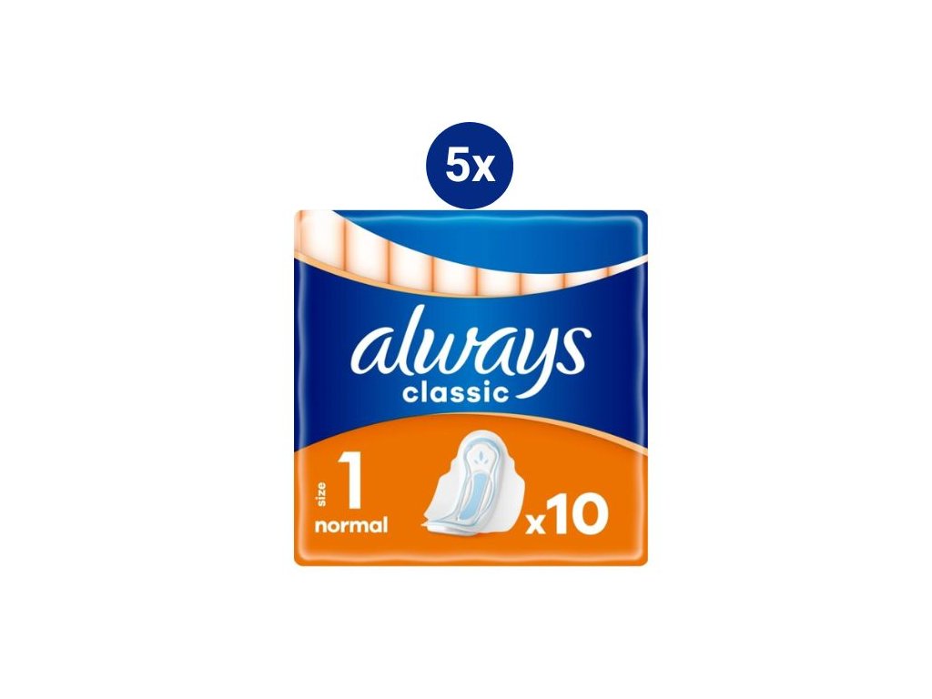 Always Classic Normal higijenski ulošci u pakiranju od 10 komada dizajnirani su za svakodnevnu zaštitu tijekom menstruacije. Nude klasičan dizajn s krilcima i tehnologijom upijanja koja pomaže da se osjećate suho i čisto cijeli dan.