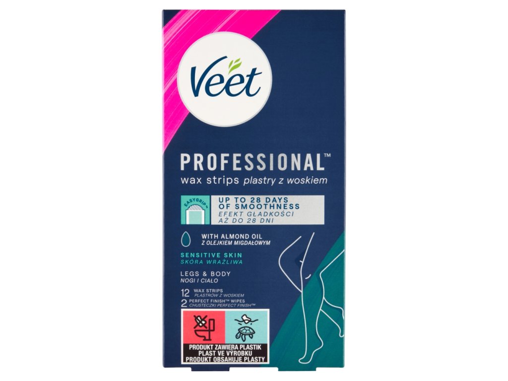 Veet trakice za hladnu depilaciju za osjetljivu kožu idealno su rješenje za žene koje još nisu isprobale depilaciju voskom. Sadrže vitamin E i bademovo ulje, imaju hidratantna svojstva i osiguravaju glatku kožu. Koža će biti hidratizirana do 24 sata. Također su učinkovite na kratkim dlačicama. Dlačice će ponovno izrasti tanje i mekše te u manjem broju. Jednostavne za korištenje. Traju do 4 tjedna.
