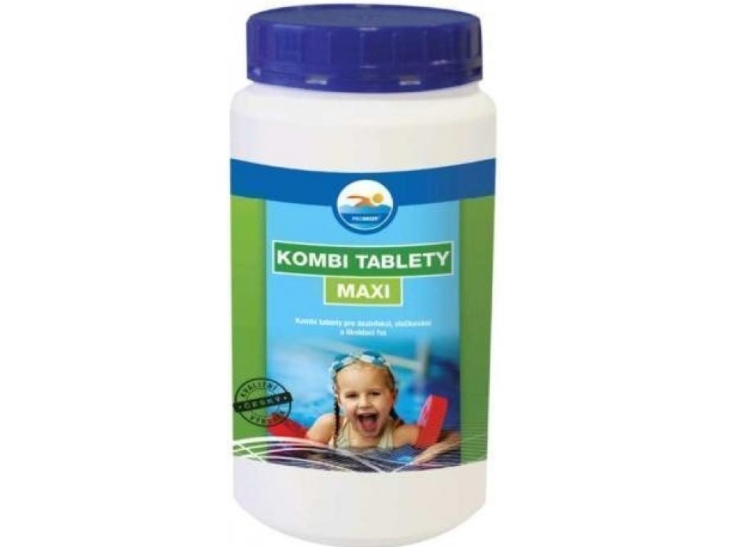 Prije nanošenja proizvoda, provjerite pH vode odgovarajućim testerom, postavite pH vrijednost na 6,8-7,6 pomoću proizvoda pH MINUS ili pH PLUS. U slučaju tvrde vode, tvrdoća se stabilizira dodavanjem STABILIZATORA TVRDOĆE. Zatim se provodi početno kloriranje s CHLOR START-om, sve prema uputama navedenim na tim proizvodima. Nakon toga, u plovak ili posudu za tablete stavlja se 1 kom KOMBI TABLETA MAXI na 20-30 m³ vode u bazenu. Ova količina trebala bi biti dovoljna za održavanje potrebne koncentracije od 0,3-0,5 mg/l aktivnog klora u vodi tijekom 5 do 10 dana, ovisno o čimbenicima koji utječu na količinu aktivnog klora u vodi, kao što su temperatura zraka i vode, intenzitet sunčeve svjetlosti i opterećenje bazena. Ispravnu koncentraciju aktivnog klora i pH treba redovito provjeravati odgovarajućim testerom. Proizvod već sadrži tvari koje sprječavaju rast algi, međutim, ako se alge pojave, moguće je provesti jednokratni tretman vode proizvodom CHLOR SHOCK prema uputama na ovom proizvodu.